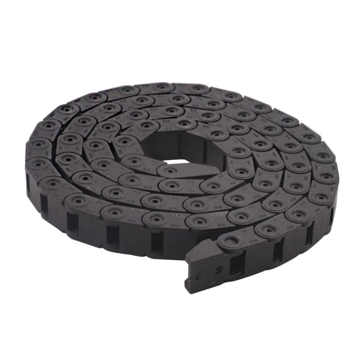 3) Unit chain around the chain plate and the upper and lower cover composition, towline can open each section, easy assembly and disassembly without threading, to the cable, tubing, pipe, pipe, etc. into the towline after opening the cover.