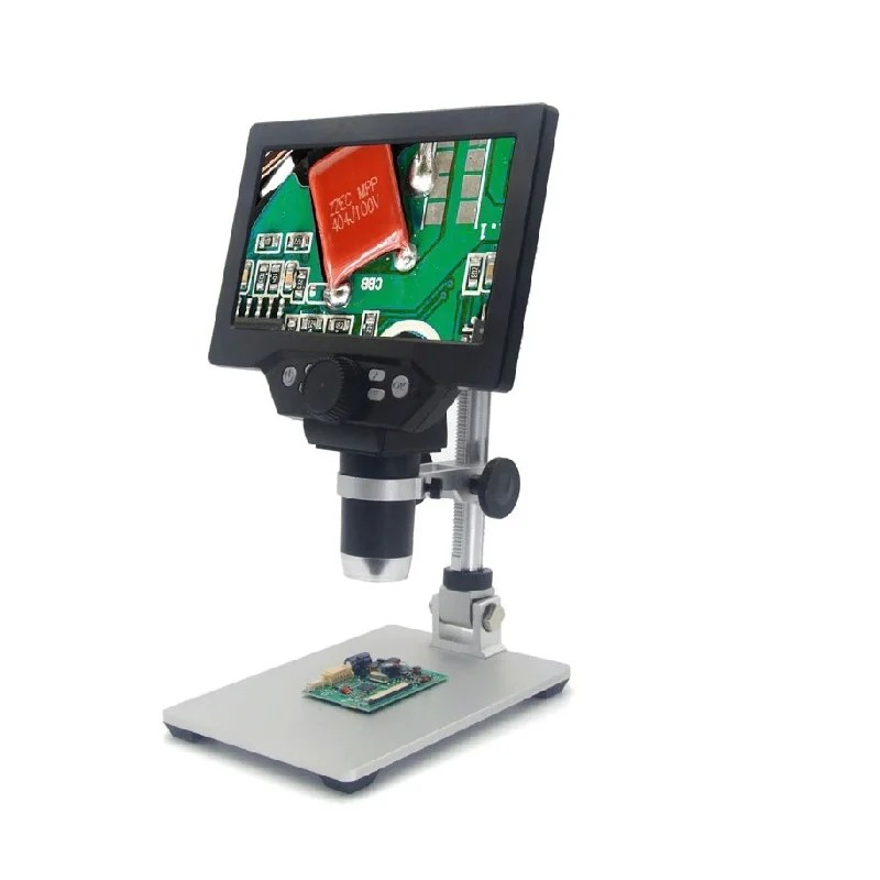 This USB digital microscope features a 7-inch HD LCD screen, offering a wide field of view for easy observation. With a 12-megapixel camera and 1-1200x continuous magnification, it delivers clear, detailed images. Powered by a 5V 2A Micro-USB, it is truly portable and independent.
