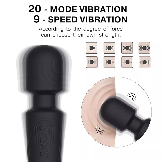 - Material : Silicone, Metal , Power Source:Corded Electric,Color:Black,Vibration Function: 8 Powerful Speeds and 20 Vibration Modes,Product Size: 20 cm (L)* 4.1 cm(D),